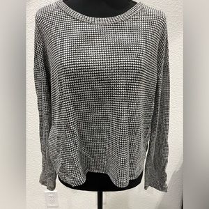 Black and gray crop long sleeve top. No problems. Crew neck.