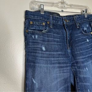 Relaxed boyfriend fit dark wash jeans from J.Crew, their destroyed/distressed Broken in Boyfriend style, size 27.