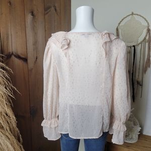 NWT Romantic Ruffled V-neck Rose Gold Polka Dot Blouse