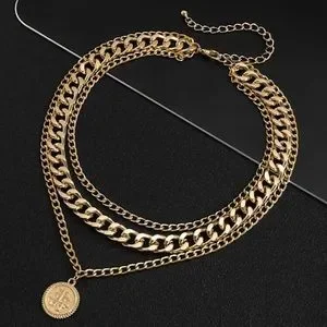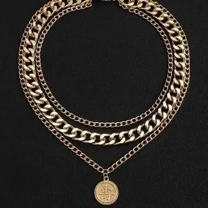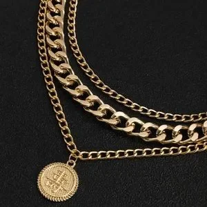 Gold Plated Round Charm Layered Necklace for Men