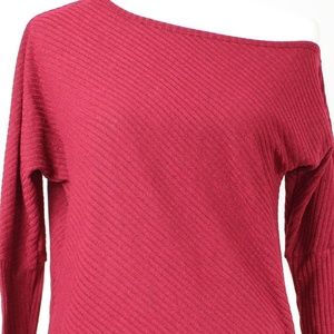 Off the shoulder, lightweight, ribbed knit sweater, size M with raglan sleeves.