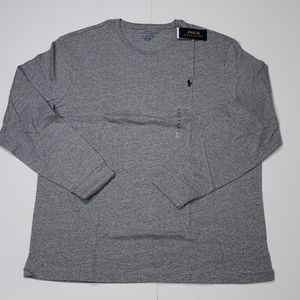 Men's gray long sleeve crewneck t-shirt with embroidered black pony on left chest