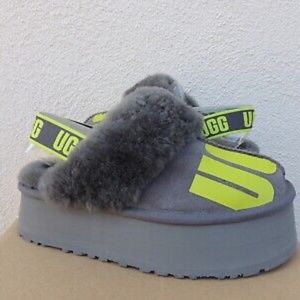 Limited Edition Charcoal/ Key Lime Green Sheepskin Platform Clog Slippers NEW NBW. The “Funkette Chopd” not sold in stores very rare! These are PLATFORM clog slippers