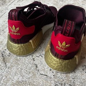 Gorgeous maroon color with red and gold detail. NMD boost. Only worn once in perfect condition!!