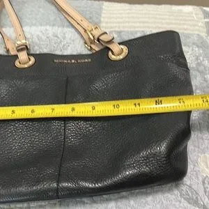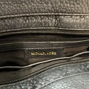 Michael Kors Black Pebbled Leather Shoulder Bag. 4 outside pockets, 3 open pockets inside with one zipper pocket. Used condition. One strap showing some wear. See photos.