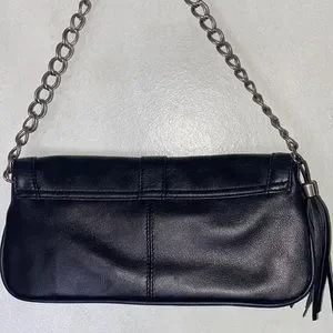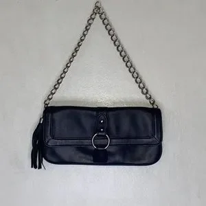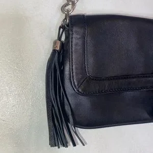 Express Black Genuine Leather Chain Tassel Shoulder Purse