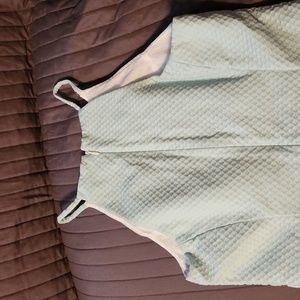 Beautiful mint/light blue color with white detail on front. Zipper closure on back. Runs small - fits more like a size 0. Perfect for summer events!