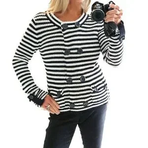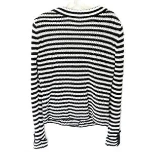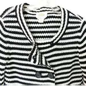Talbots Womens Black & Wh8te Stripe Knit Double Brested Casual Sweater Jacket Sz S