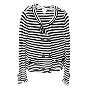 Talbots Womens Blk & White Stripe Knit Double Brested Casual Sweater Jacket Sz S