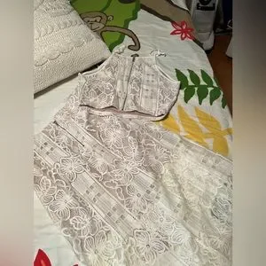 Beautiful dress fits very nicely and comfortable great for any occasion, wore only once, crop top ptp 13”length x 15” across,,, skirt is 39” long ,both pieces are lined !zippered in the back of skirt. adjustable straps on crop top.