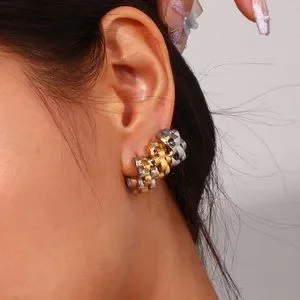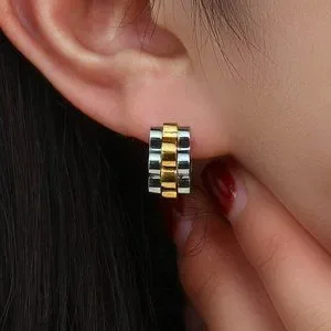 Beautiful Two-Tone 18K Gold and White Gold Plated Vintage Chunky Watchband Hoop Earrings.