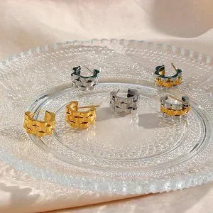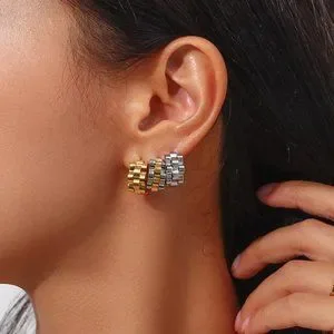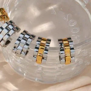 Vintage Two-Tone Chunky Watchband Hoop Earrings PVD 18K White Gold & Silโฆ