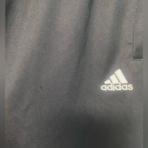 Adidas Climate warmup soccer pants with the zip bottoms for easy access to put on even while wearing cleats/shoes. Two pulled stitch areas, see photos; other than that, great condition.