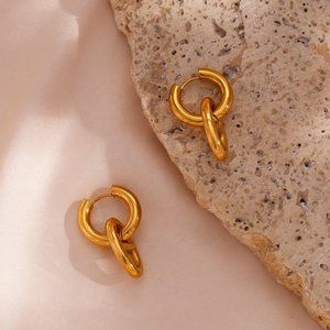 Link Chain Pig Nose Mariner Anchor Earrings 18K Gold Plated Stainless Steel