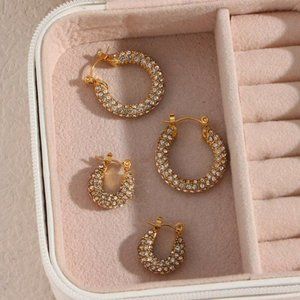 High quality Zircon chunky hoop 18k Gold plated Stainless Steel earrings.