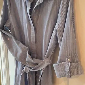 This shirt is so versatile. It is long sleeve but gives you the option to make it short sleeve. Great for work or play with belt around waist. Lumiere brand. Size M. Barely worn. From pet free, smoke free home. 28” long & 15” pit to pit. See photos for measurements.