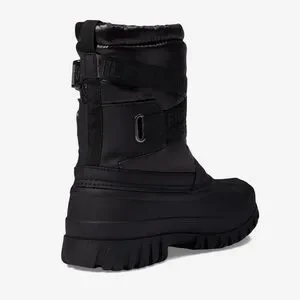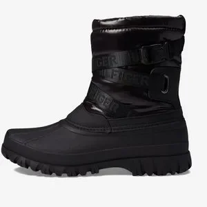 Perfect for your cold weather hikes, the Tommy Hilfiger Macky Boots come with a tonal logo buckle detailing, keeping this pair sleek and stylish. Man-made textile upper. Textile lining. Faux fur sock liner. Water-resistant construction. Signature brand detailing on the outsole. Round toe design. Leather outsole