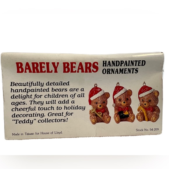 This is a Vintage Barely Bears Ornaments for Christmas Around the World set. Includes 3 handpainted bears in original packaging. Super cute! Bears are plastic. Non-smoking home. Willing to bundle!