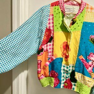 3) Vintage Diane Gilman Art to Wear Artsy Boho Sequined Patchwork Quilt Bomber …