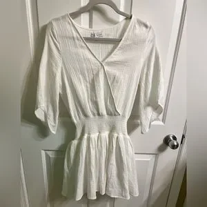 Super cute mini white dress. Size small. V-neck. 3/4 flare sleeves. In excellent condition.