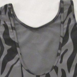 Grey and Black (Grey Five) animal print crop top with back cutout; athletic.