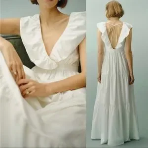 Reformation NWT Fairfield White Ruffle Maxi Dress size 0
