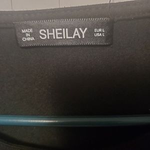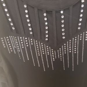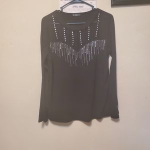 Black top with Rhinestones on the front. Size Large. In excellent condition. Was worn once. Pit to Pit measurement is approximately 18in. Has long sleeves