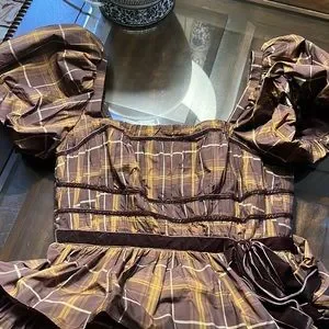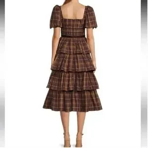 Antonio Melani Maisie Plaid Print Square Neck Puff Sleeve Ruffle Midi Dress