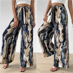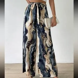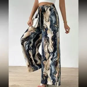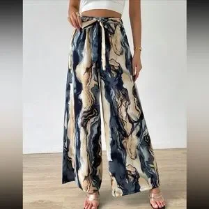 Boho Watercolor Abstract Print Wide Leg Palazzo Lounge Pants