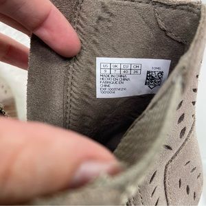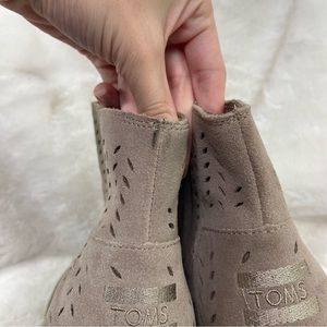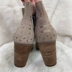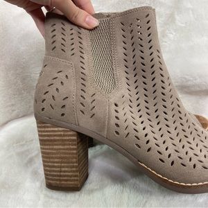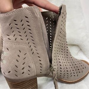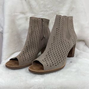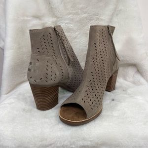 TOMS MAJORCA khaki suede cut out PEEP TOE BOOTIES. Size 9