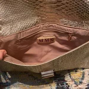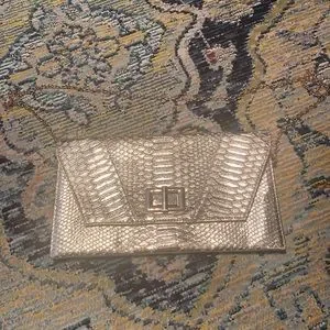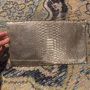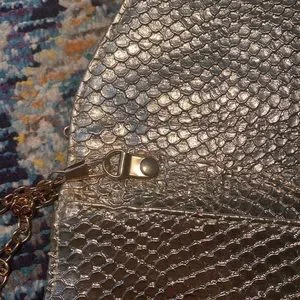 Super cute gold evening bag with a removable gold shoulder chain strap. This has a faux snakeskin look. In excellent used condition and no flaws that I can see. I just don’t go out enough to get much use out of this so I want it to go to a home where it can get more use. Comes from a pet and smoke free home so make me an offer!