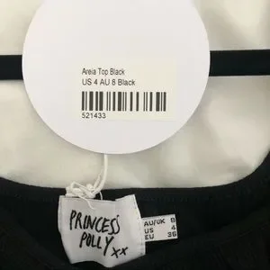 Princess Polly Areia Black Top, US 4