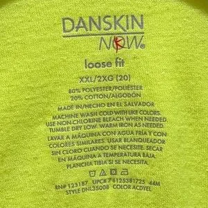 Fluorescent green, long sleeve top by Danskin Now. Perfect for running or sitting on the couch. Lightweight and comfortable with Dri-More feature. Somewhat form fitting. Made of 80% Polyester/20% Cotton. machine wash. EUC. No rips or stains.