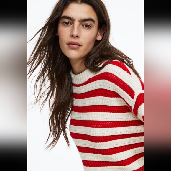 Brand new H&M Hole-knit Sweater in the shade 'Red/striped'!! Size Medium, true to size. The perfect classic piece for every season! Pairs with everything from denim to satin Midi skirts. Never worn except to try on, tags attached and in original packaging. Original price $39.99 +tax ($45.19). Sold out online!! Price is firm 🤍❤
