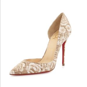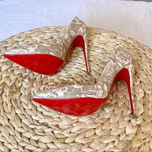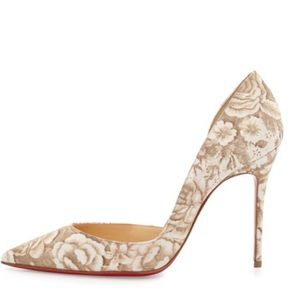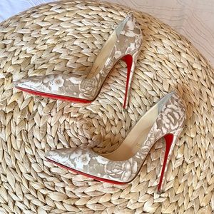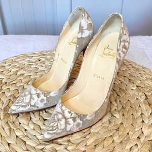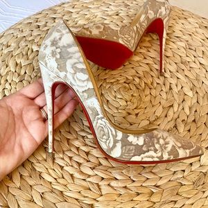 Christian Louboutin Pigalle Follies 120 Beige Floral Red Sole Pump