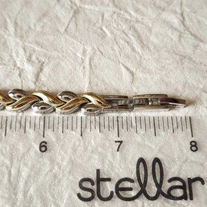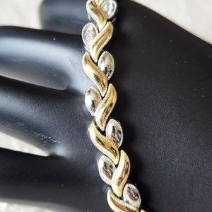 Tennis Link Bracelet Silver Gold Two Tone Hearts Mid Century Modernist 7" Gift