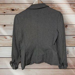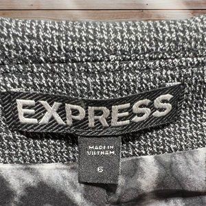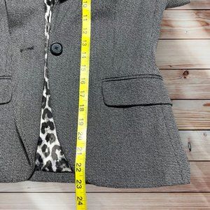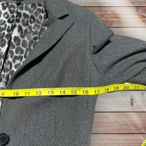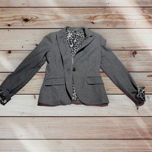 Great condition suit jacket/blazer from Express. Gray on outside with black and gray animal print on the inside. Long sleeve, collared and with one button closure. No rips, stains, or tears. No cosmetic damage.