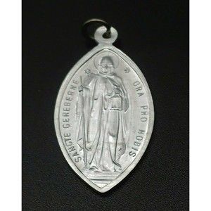 Vintage Saint Dymphna St. Gereberne Catholic Medal Pendant Silver Tone Germany