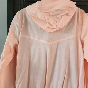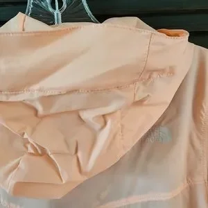 TNF peach color or pastel orange however you wear it. Nice lightweight zip front windbreaker with 2 zip front pockets, adjustable hoodie. TNF logo front and back. Add this to your bundle for and extra 10% off.