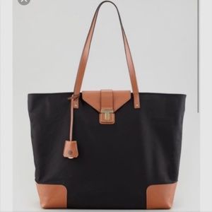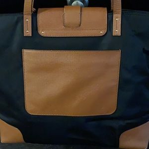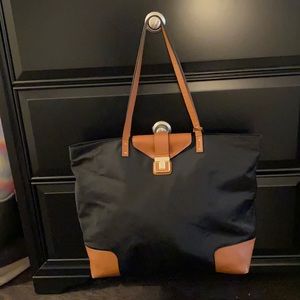 Tory Burch Black Nylon Tote/Camel Accents