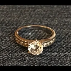 This is a cubic zirconia silver ring. I wear a size 6 on my ring finger and it fits perfectly.