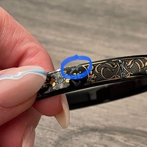 Small chip (pictured) but unnoticeable when being worn. Bundle more than one item & receive a discount :)