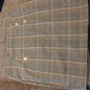 This beautiful plaid skirt is perfect for work. 19.5 is the length and 32 is the waist. Hips 21 inches. 65% polyester 30% viscose 2% elastine. NWOT