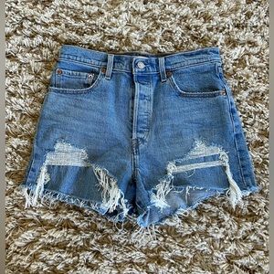 This is a great pair of denim shorts for you Levi's fans out there! These are the "Premium" line so really great quality. Hi rise, button fly, destroyed and a little stretch! Size is 29. I added a few pics with measurements... I got these new and never wore them so they are basically new without tags. Grab a great deal here!