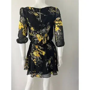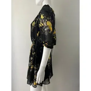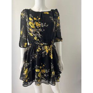 Womens Lucca Couture Black Yellow Flower Sz S Boho Chic 3/4 Sleeve Flowy Dress S