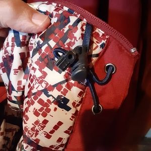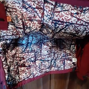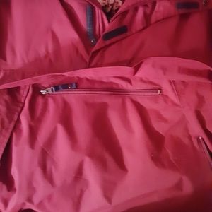 Complete snow boarding jacket (includes hood) by Crane. Size - LARGE. Color - Burgundy. Side zippers to allow easy on/off.