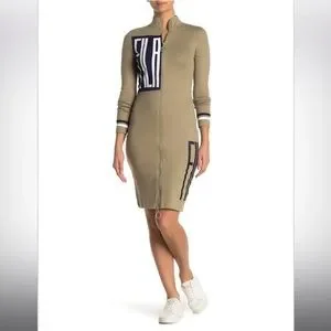 FILA Ada Zip Dress is a long sleeve, bodycon fitting, sporty. A inspired sweater dress complete with a mock neck collar, zip up front, midi length and the brand’s signature logo embellishing the front of the dress. A ribbed knit fabric base provides a subtle amount of texture, adding extra dimension to your look.