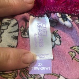 This beautiful nightgown is so silky smooth, stretchy and soft. So comfy. The back has criss-cross spaghetti straps with a see-thru floral lace. The material is 90% polyester and 10% spandex. Machine washable in cold water and line dry. It’s new without tags and in excellent condition. Offers are welcomed.