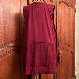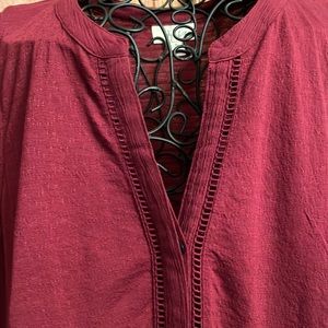 Top is much prettier than the photos allow. Bodice is a soft jersey type material, and skirt is gauzy. Pretty hem stitch though-out. Buttons are hidden under a placard. New without tags. 19” pit to pit. 30” shoulder to hem. Smaller in the bust than most XL, but top stretches.