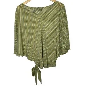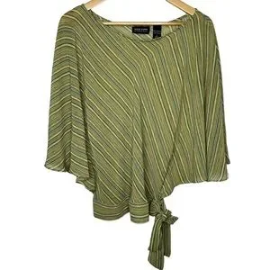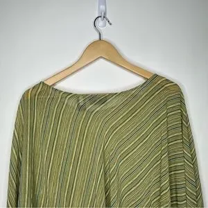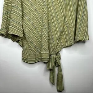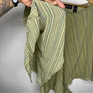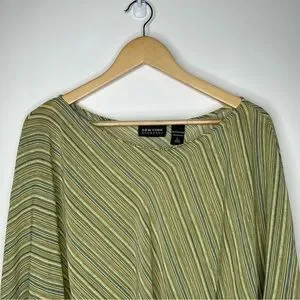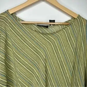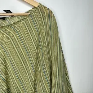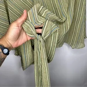SOLD! New York & Company Striped Green Brown Flare Sleeve Blouse L #X0927